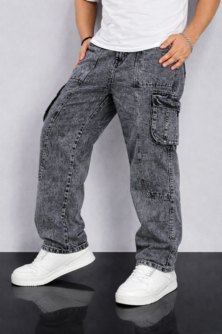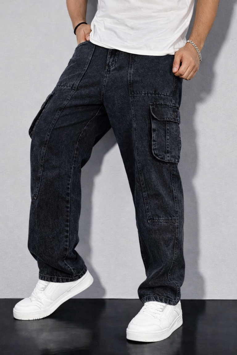 MEN’S BLACK WASHED CARGO JEANS- CODE 999